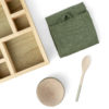 Every Ritual Set includes wooden organizer, mask bowl, spoon and linen towel. Designed to hold up to 10 little bottles and 4 bigger beauty essentials.